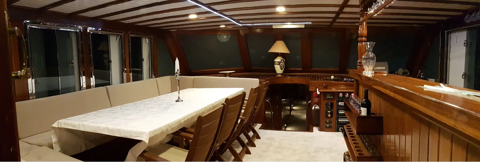 Poți savura delicatesele culinare sau băuturile pe punte, sundeck, flybridge, în salon sau în orice alt colț al ambarcațiunii în care te simți confortabil.